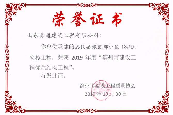 山東蘇通建筑工程有限公司,創(chuàng)建于2009年8月。目前擁有房屋建筑工程施工總承包壹級(jí)、市政公用工程施工總承包叁級(jí)、水利水電工程施工總承包叁級(jí)資質(zhì),同時(shí)還具有建筑裝修裝飾工程專業(yè)承包貳級(jí)、消防設(shè)施工程專業(yè)承包貳級(jí)、鋼結(jié)構(gòu)工程專業(yè)承包叁級(jí)、建筑機(jī)電安裝工程專業(yè)承包叁級(jí)等專業(yè)承包資質(zhì)。 公司總部坐落于山東省濱州市濱城區(qū)黃河十二路877號(hào),現(xiàn)有辦公面積約2000平方米,機(jī)構(gòu)設(shè)黨支部工會(huì)辦公室、總經(jīng)理辦公室、綜合辦公室、工程管理部、經(jīng)營(yíng)預(yù)算部、資產(chǎn)財(cái)務(wù)部、材料設(shè)備部、運(yùn)行管理部、法律事務(wù)部等多個(gè)職能部門。公司管理體系已經(jīng)通過了GB/T 19001及GB/T 50430質(zhì)量管理體系、GB/T 24001環(huán)境管理體系(EMS)、GB/T 28001職業(yè)健康安全管理體系(OHSMS)等體系的認(rèn)證。 公司承建完工了濱州市建大教師之家、建大清怡苑、香格里拉水岸綠城住宅小區(qū)、雙泰建大城、曲阜崇德公館住宅小區(qū)、北海新區(qū)御景藍(lán)灣住宅小區(qū)、沾化德榮國(guó)際華城住宅小區(qū)、惠民橄欖郡住宅小區(qū)等工程項(xiàng)目,目前在建工程項(xiàng)目有:濱州市頤高國(guó)際電子商務(wù)產(chǎn)業(yè)園住宅小區(qū)項(xiàng)目、濱州市東盛國(guó)際項(xiàng)目、高新區(qū)建大中央華府住宅小區(qū)項(xiàng)目、濱州市融匯新里程住宅小區(qū)項(xiàng)目、濱州市建大秦皇壹號(hào)住宅小區(qū)項(xiàng)目、濱州市森林花...